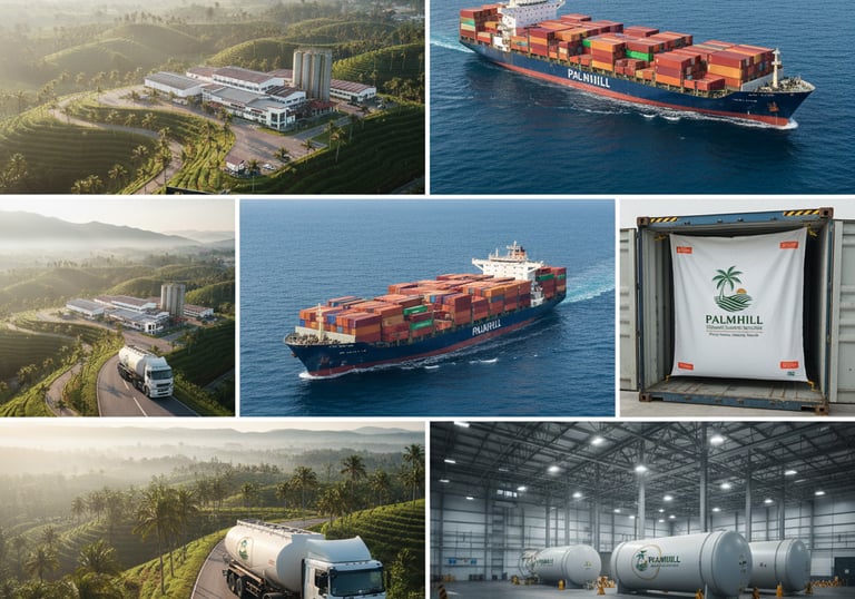 Di PalmHill, kami memahami bahwa Crude Coconut Oil (CCO) berkualitas tinggi memerlukan penanganan logistik yang sangat hati-hati. Sistem distribusi kami dirancang untuk mempertahankan karakteristik "Highland Purity" dari gerbang pabrik hingga ke fasilitas produksi pelanggan kami di seluruh dunia.