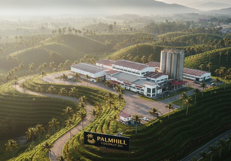 Kami percaya bahwa kualitas minyak ditentukan oleh waktu. Oleh karena itu, pusat pengolahan PalmHill dibangun tepat di jantung perkebunan perbukitan kami. Dengan konsep "Farm-to-Factory Zero Distance," kami memangkas rantai distribusi bahan baku sehingga buah kelapa dapat diproses hanya dalam hitungan jam setelah dipetik. Hasilnya adalah minyak kelapa dengan kadar asam lemak bebas (FFA) yang sangat rendah dan stabilitas kualitas yang tak tertandingi.